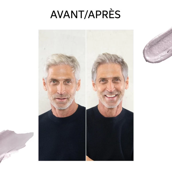 - Apporte des reflets argentés et de la brillance aux cheveux naturellement blancs ou poivre et sel