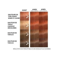 Avec le masque colorĂ© Copper Glow, ravivez et maintenant l’aspect flamboyant des tons cuivrĂ©s. Cette nuance est parfaite pour les hauteurs de ton de /5 et + et entretient idĂ©alement les nuances /43, /34 et /47. Plus votre hauteur de ton est claire, plus le rendu sera brillant.